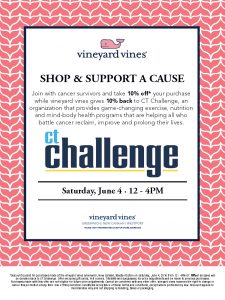 For three years running, Vineyard Vines has opened wide the doors of its Westport, New Canaan and Greenwich, Connecticut stores on a weekend day in June, donating a portion of sales to Mission. Held in conjunction with National Cancer Survivors Day, their support helped fund a team riding in the marquee Mission bike fundraising event – the CT Challenge.